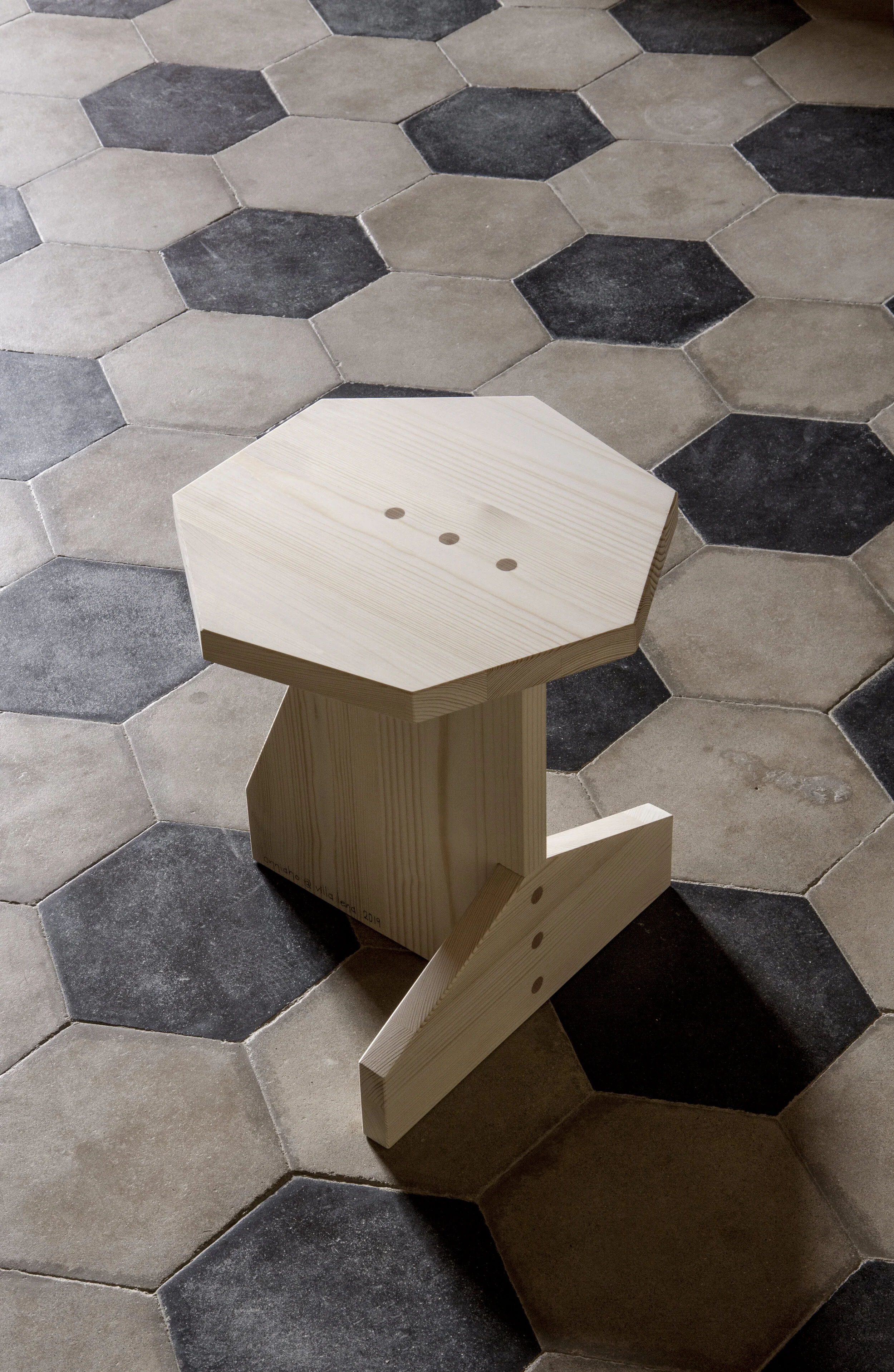 Tools and manufacturing resources put limitations on design and can feel restrictive, but can also work as an inspiration. For this project only having a rail saw and a cordless drill rendered curves and complex joints impossible. Therefore I decided to explore dynamic shapes and compositions that could be created by straight lines, as well as joining methods that are honest to the material and the tools available. As such, the stool became a record of the time and place it was created in, reflecting the limitations and inspiration of it’s surroundings.